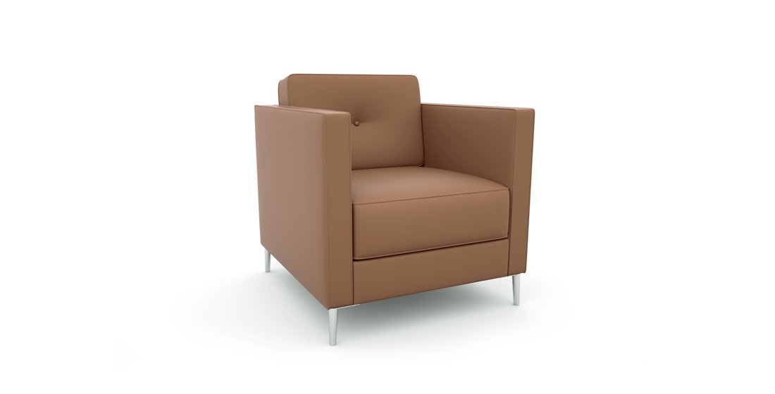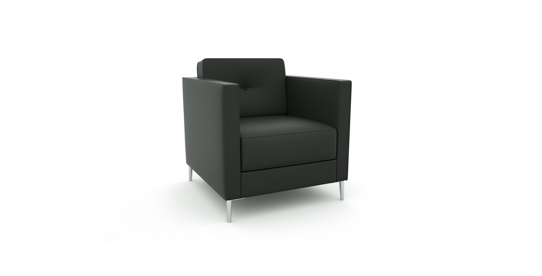 Bruce office chair is a part of a premium quality seating range. Bruce is chunky, very comfortable and available as an armchair, a two-seat sofa and a three-seat sofa. All seats are sprung for extra comfort, durabilty and longevity of life. The base sits on short, polished aluminium stiletto legs. We can upholster in a reasonably priced fabric, wool fabric or leather.