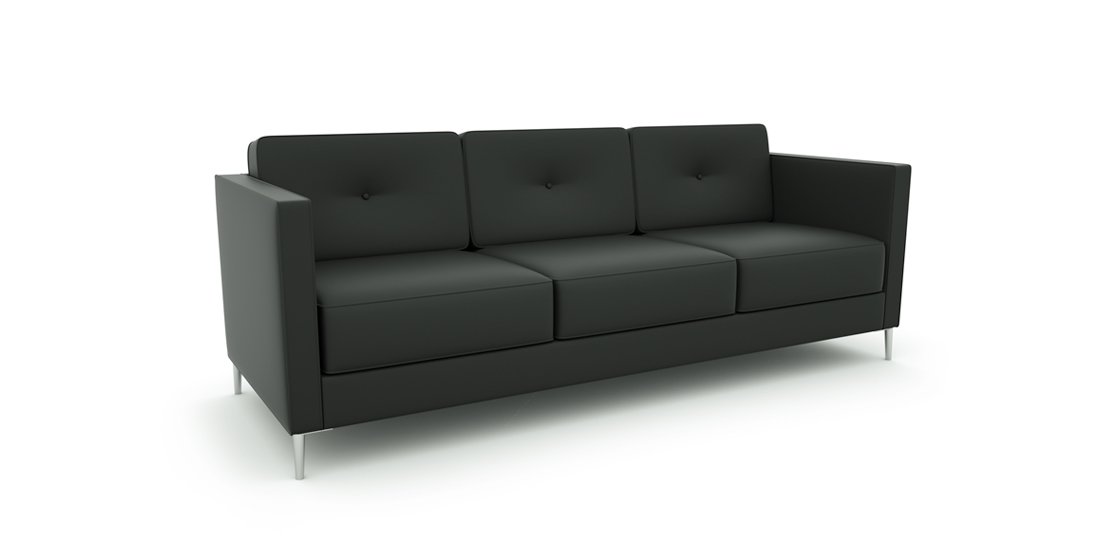 Bruce office seating is a premium quality sofa. Bruce is chunky, very comfortable and available as an armchair, two seat and three seat sofas. All seats are sprung for extra comfort, durabilty and longevity of life and we can upholster in a reasonably priced fabric, wool fabric or leather. The legs are die-cast aluminium, which can be polished, satin-finished or painted various colours.