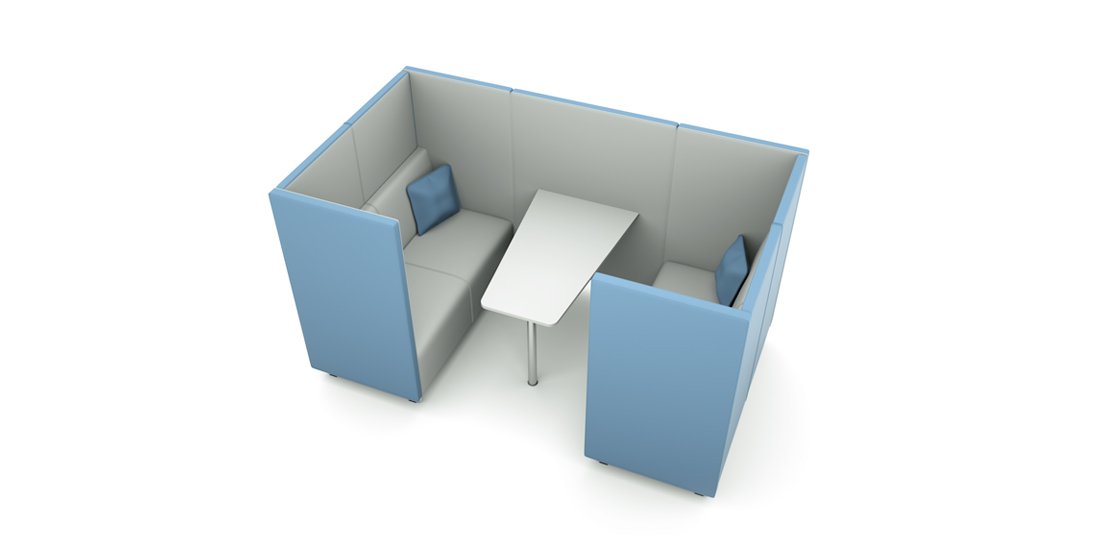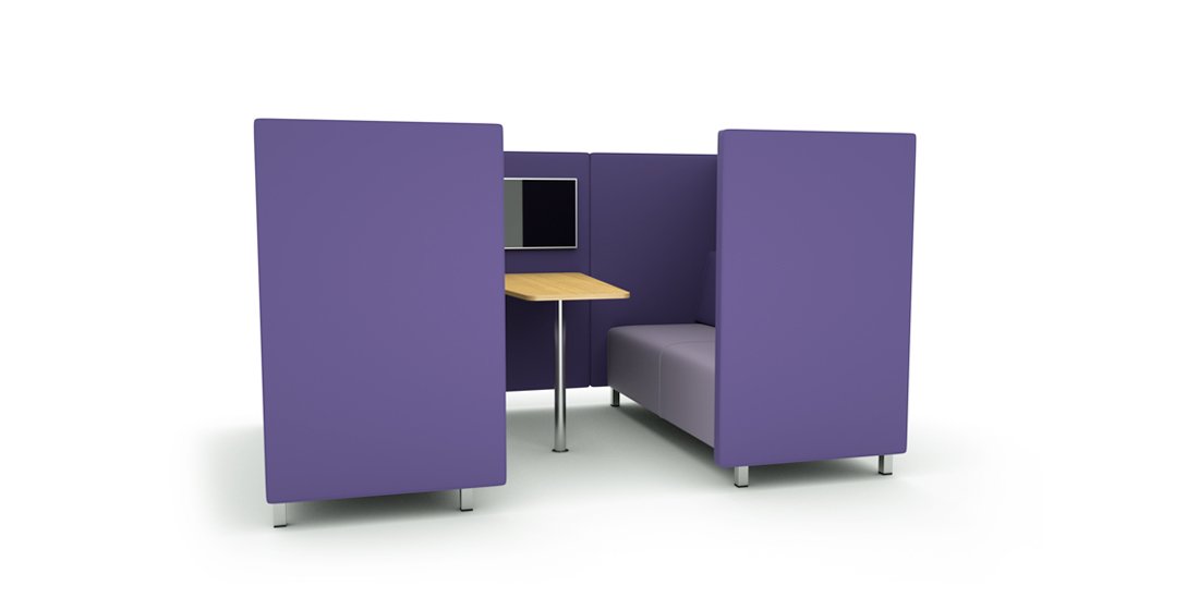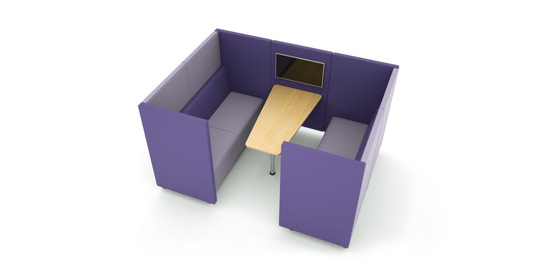 Daisy office meeting space allows a team or group of up to 4, to sit comfortably in a isolated area of the office and host a briefing, meeting, discussion or presentation. The high back design of this office booth isolates you from background office noise and allows you to host your meetings in a quiet enclosed seating space.