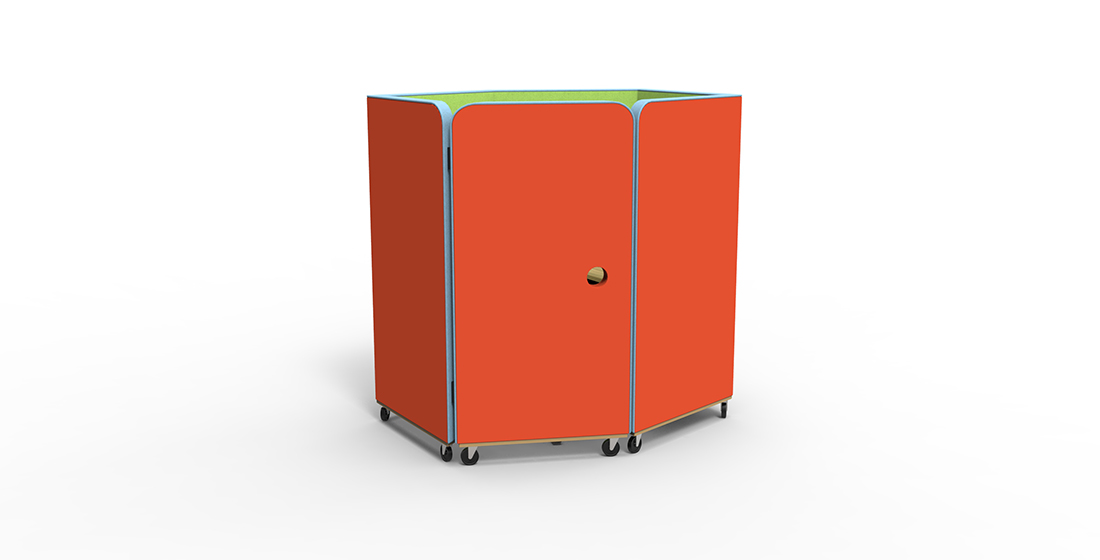 Pearl individual office booths are simple and great value for money. Providing staff members with a private workspace enclosure, the acoustic properties of the fabric covered walls absorb background noise allowing workers to focus in a calm, quiet office environment. Pearls hexagonal design means office layouts are no longer boring and can be considered as functional art. Mounted on sturdy casters, these office booths are easy to transport or move, and make a change of office layout simple and quick. Each individual booth is 1600mm high and available in either Band1 or Band2 fabric.